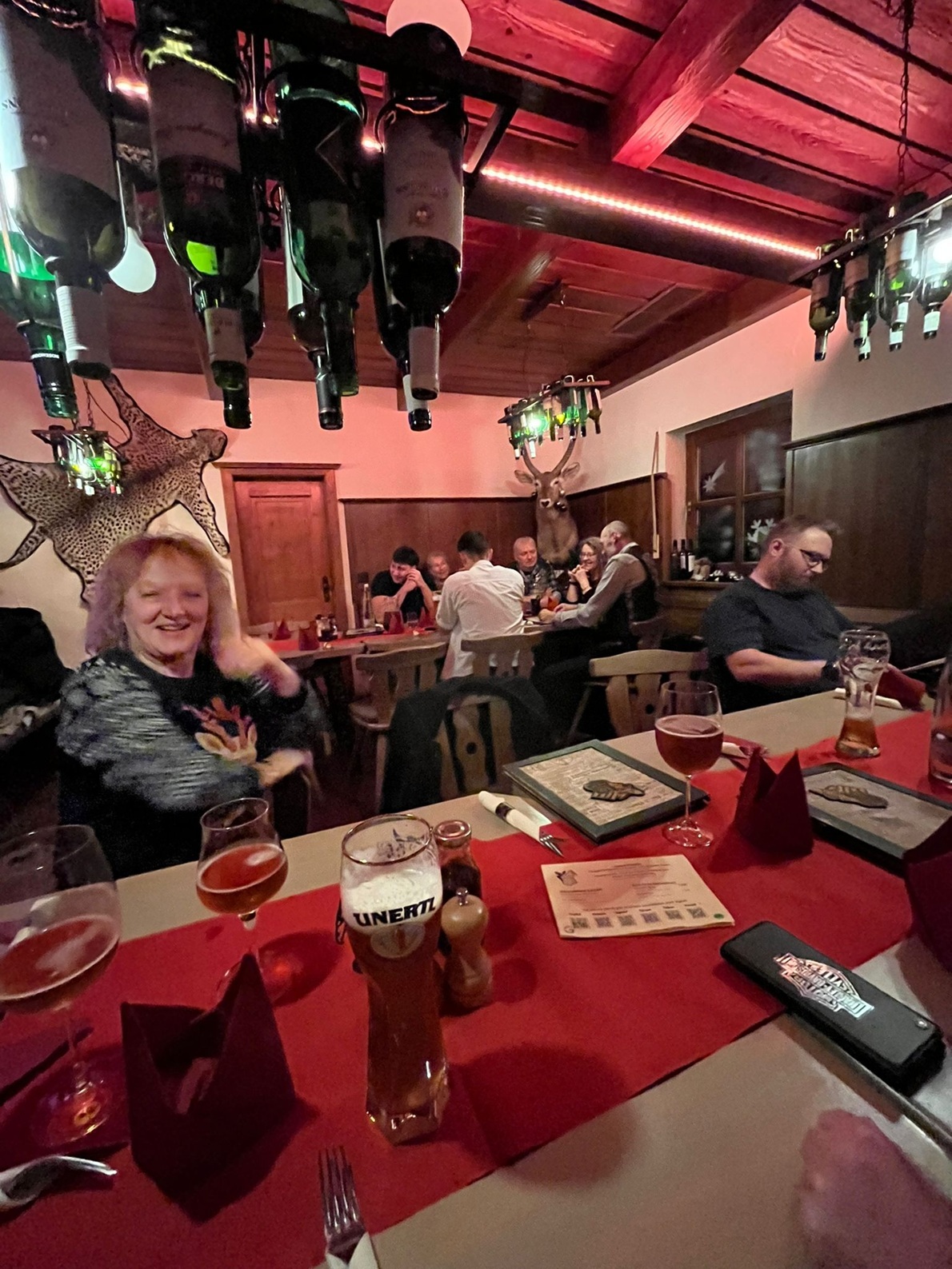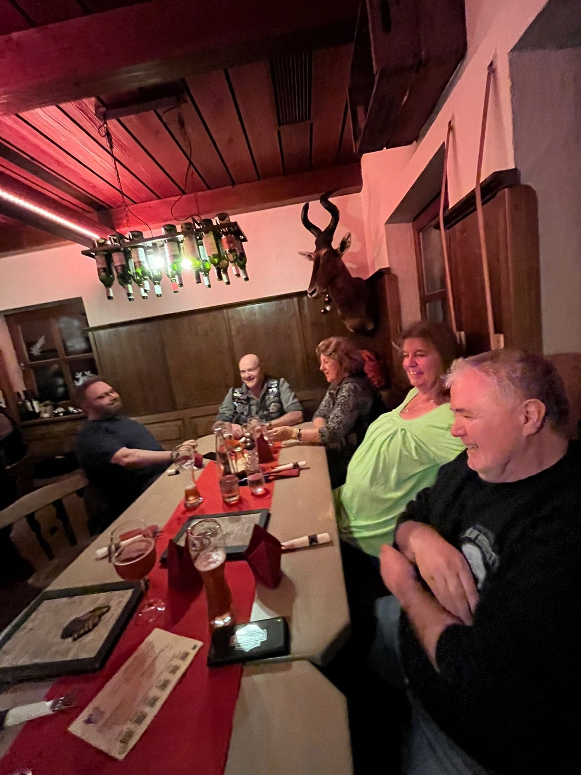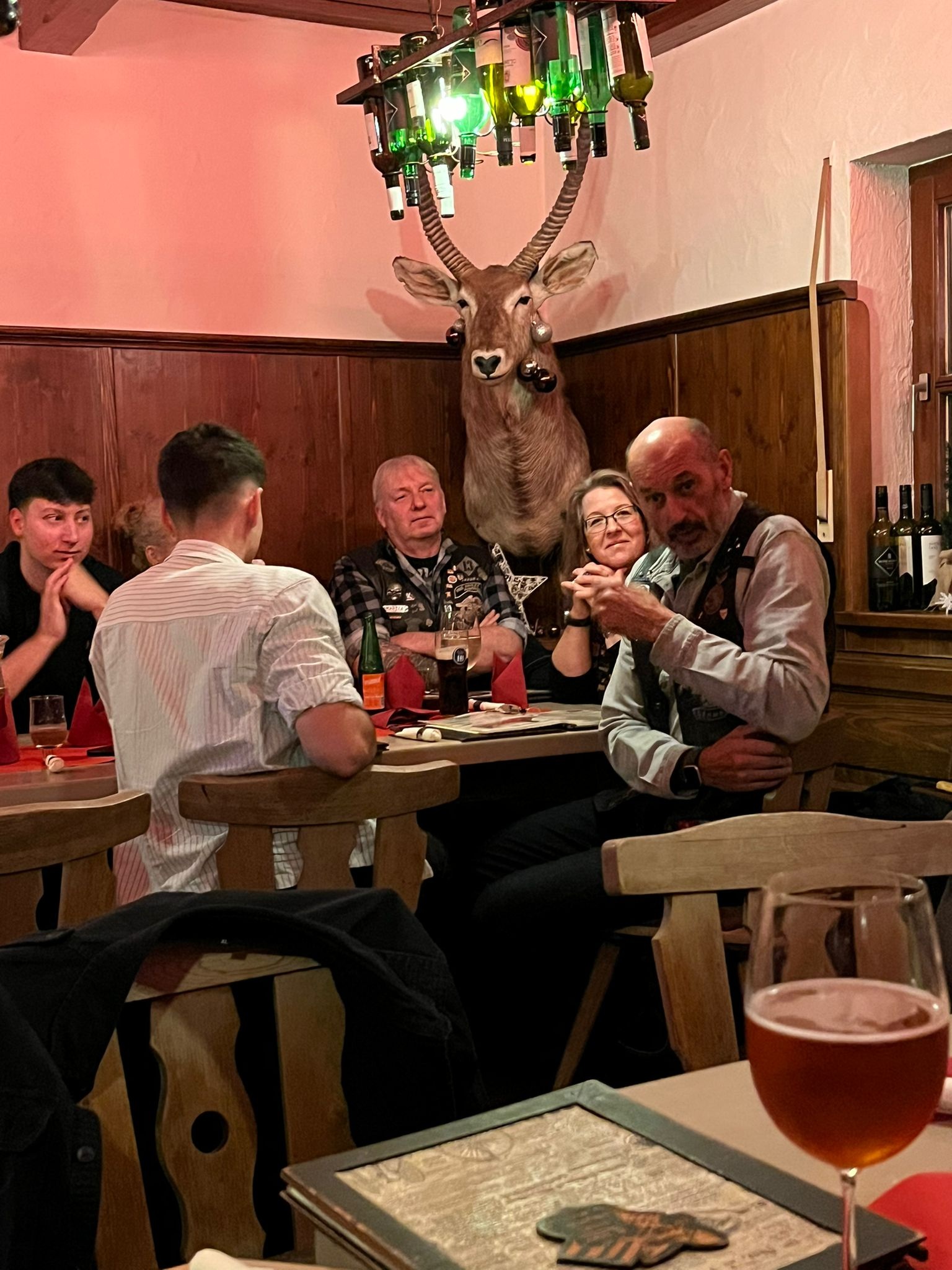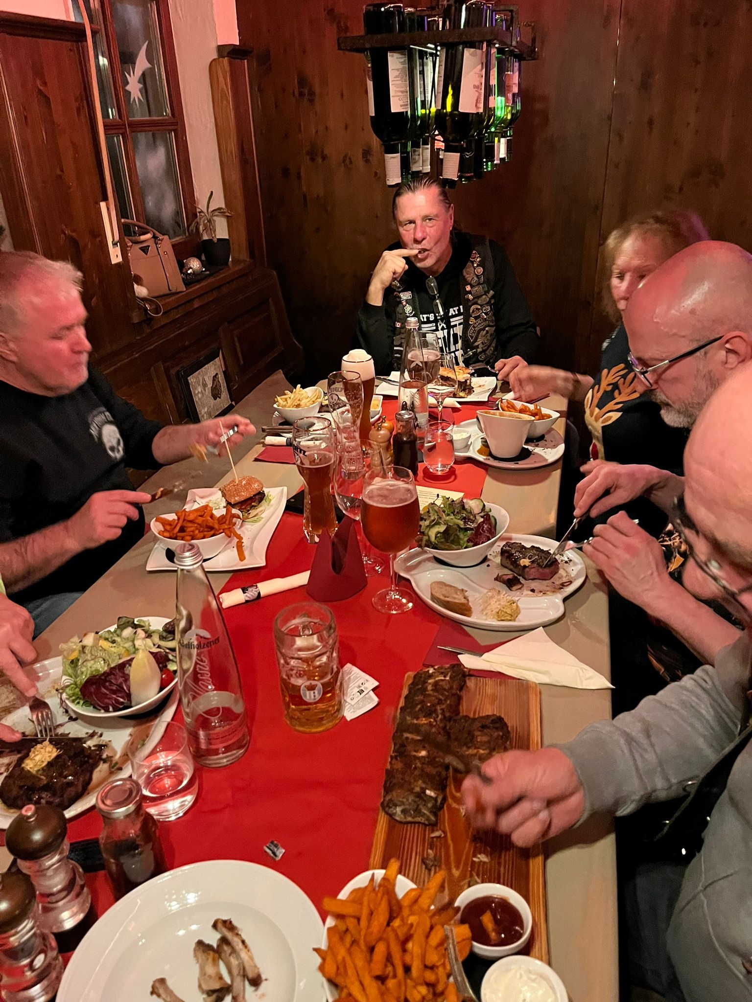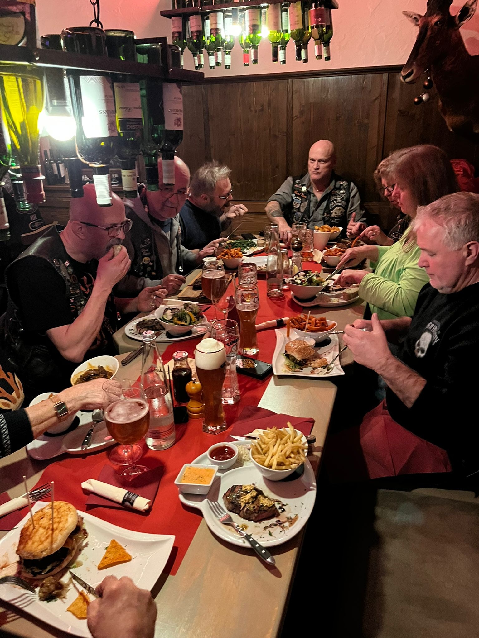 Halloween-Stammtisch am 31.10.2025 um 19 h beim Höhensteiger. Charly & Monika (Frau von Tom mit Hund) fehlen auf dem Foto. Full-Member-Aufnahme von Tom!